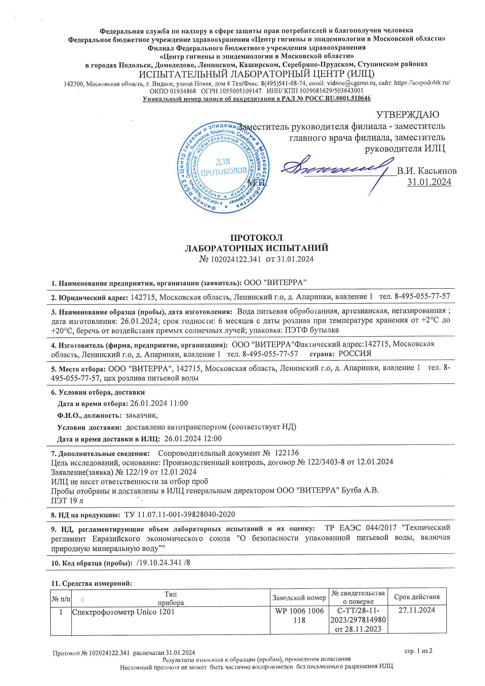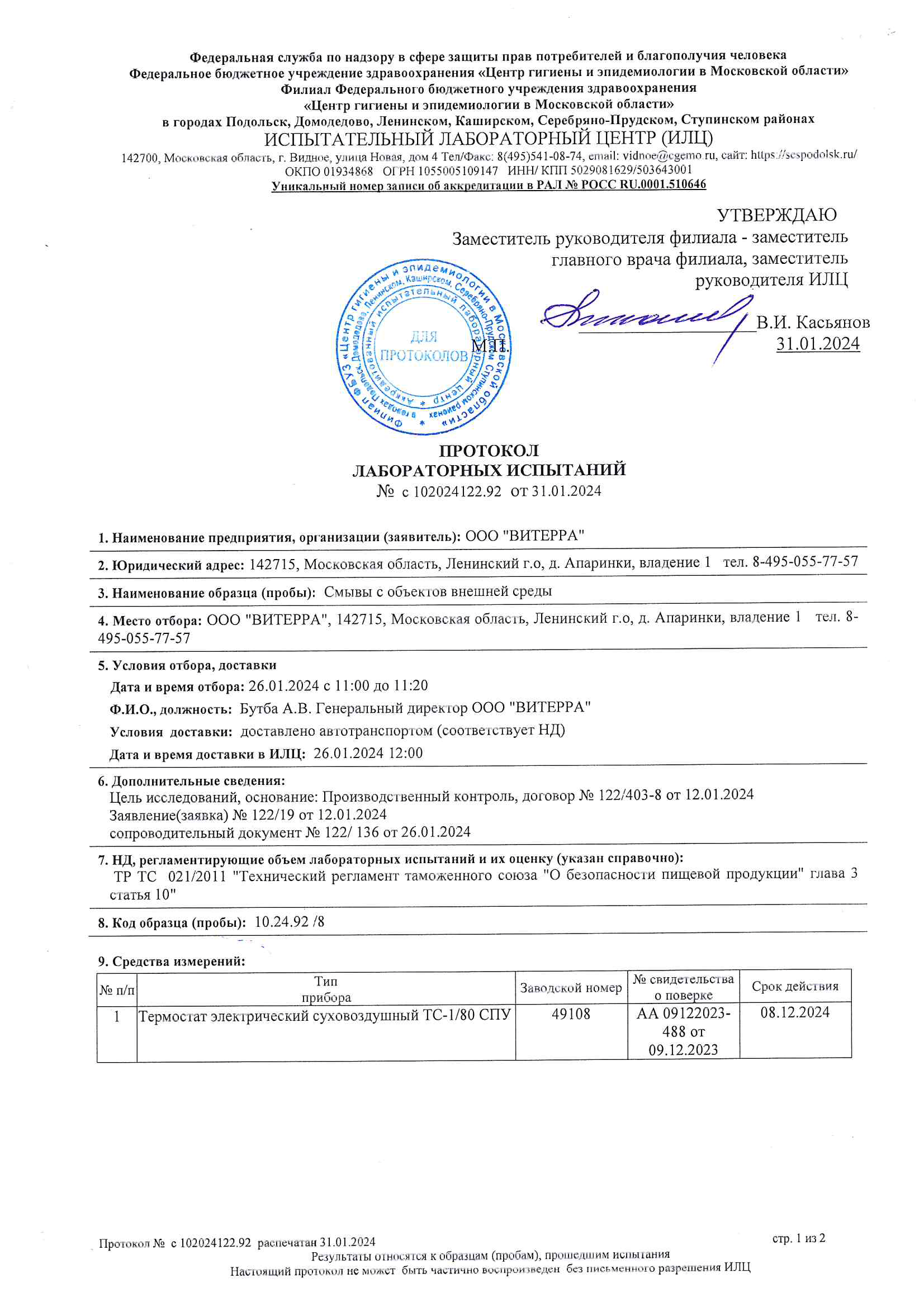 Протокола испытаний № б/СГ- 18.04/25 от 1 8.02.2025 года, выданного Испытательным Центром